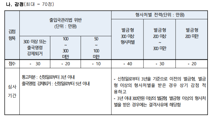 최근 3년 내 출입국관리법 위반으로 인한 통고처분 금액 합계가 500만원 미만일 것