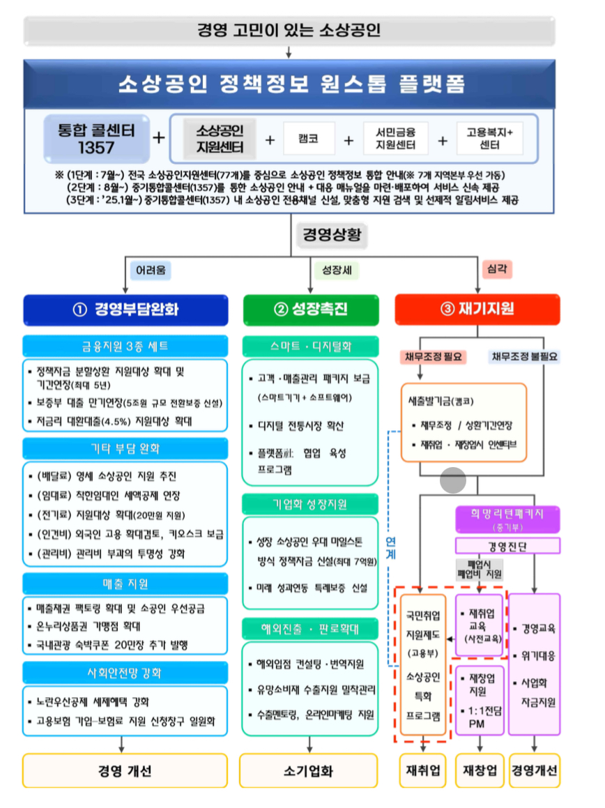 소상공인의 경영부담 완화, 성장촉진, 재기지원을 골자로 마련되었습니다.