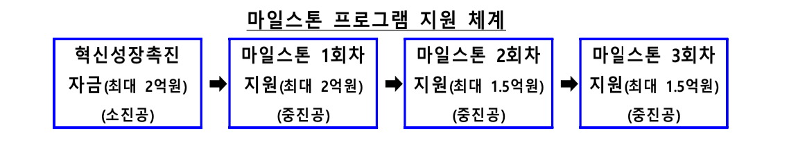 • 정책자금 지원(마일스톤지원 프로그램): 성장 가능성이 높은 소상공인이 소기업으로 도약할 수 있도록, 최대 7억 원의 정책자금을 지원합니다. 소상공인 졸업후보기업 대상 전용자금을 최대 2억원을 공급하고(소진공), 소기업으로 성장 시 추가자금 제공(중진공)