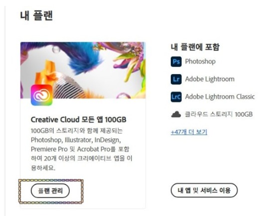 1. 홈페이지 접속 후 (https://account.adobe.com/) 계정관리