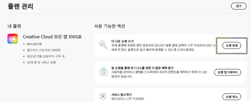3. 플랜 변경 클릭 > 가장 저렴한 요금 재구독