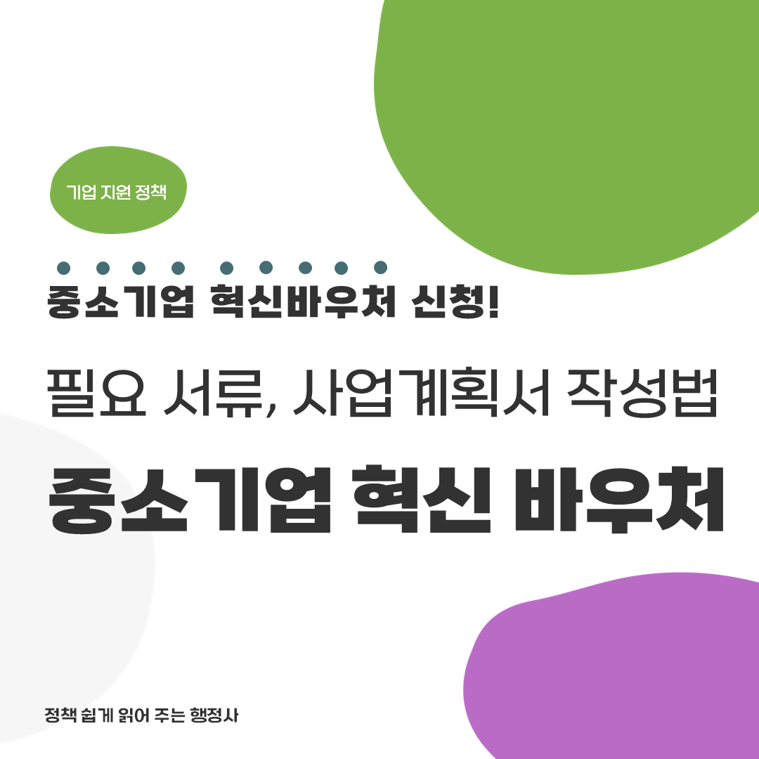 이번 포스팅에서는 중소기업 혁신 바우처 신청 시 필요한 서류가 무엇인지, 사업계획서 작성 시 유의해야 하는 사항에 및 각 항목별 작성 TIP을 알아보도록 하겠습니다. 사업계획서 작성방법은 그 내용이 길어 1~2편 나눠서 설명하도록 하겠습니다.