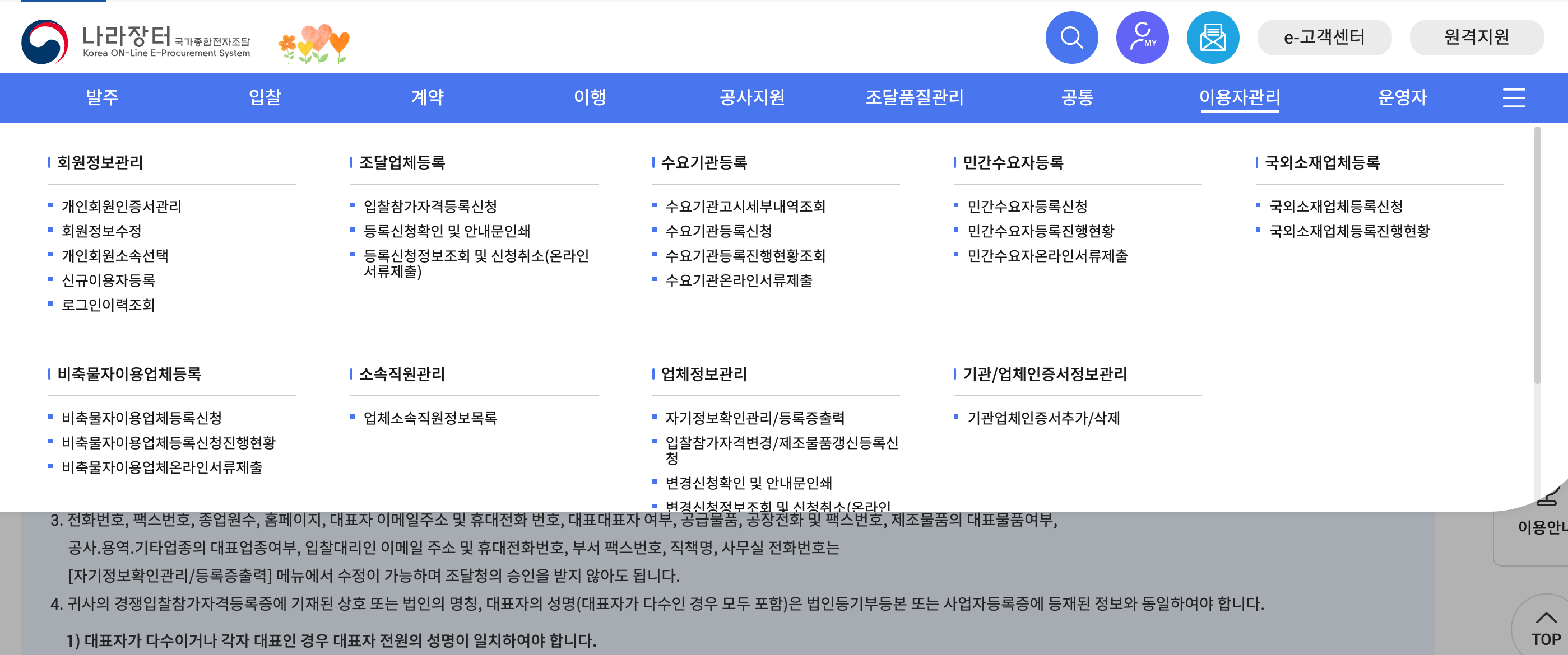 입찰에 참여하려면 해당 분야에 대한 자격을 갖추고 이를 등록해야 합니다.