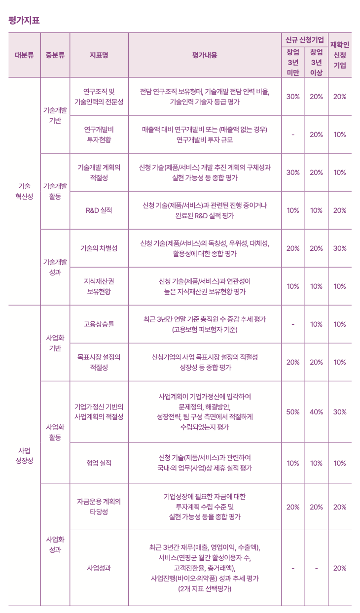 혁신성과 성장성은 다음과 같은 판단기준과 같이 살펴볼 수 있습니다.