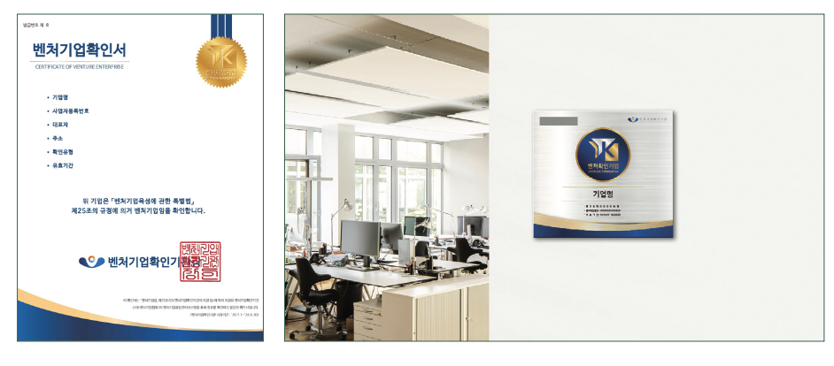 벤처기업확인서와 벤처기업 마크를 사용할 수 있다.