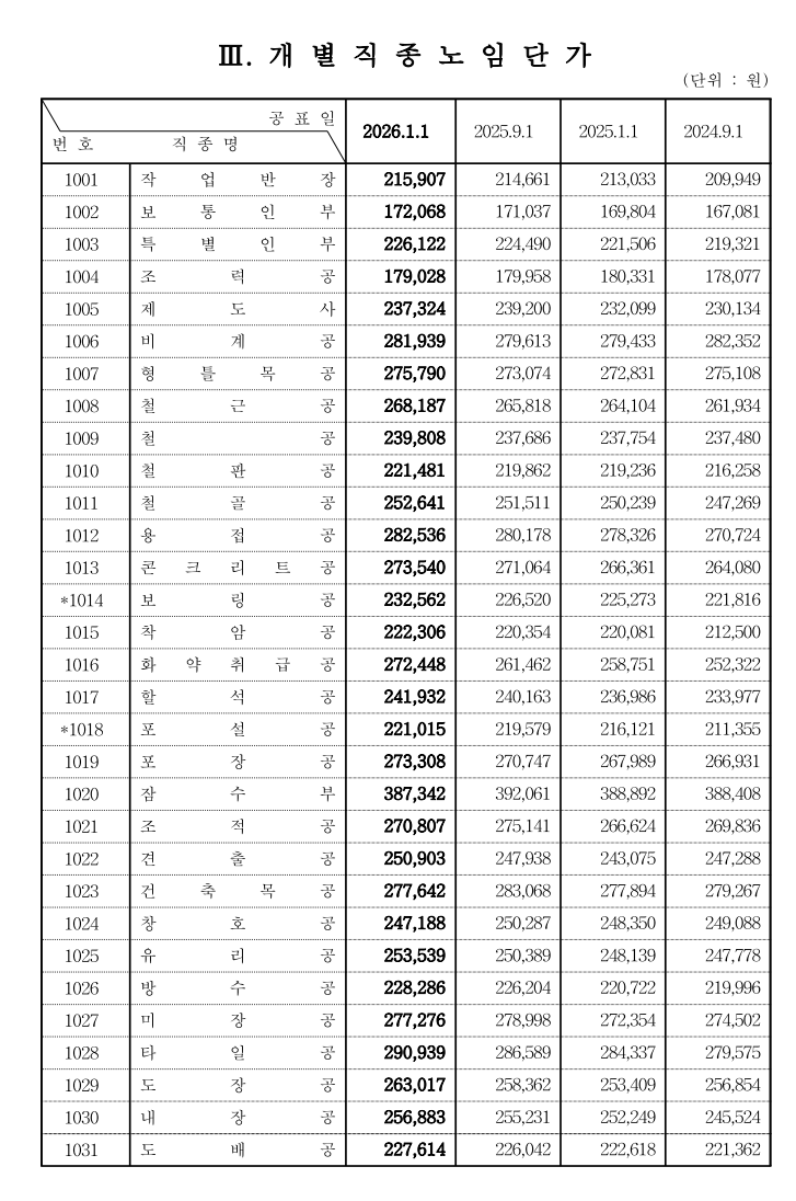 2026 상반기 건설업 임금실태조사 보고서 자료 (시중 노임단가)