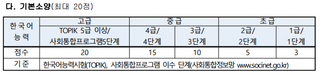 나이, 학력, 한국어능력, 연간소득 등을 종합적으로 평가하여 80점 이상을 획득해야 해요.